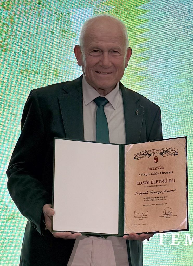 A Magyar Edzők Társasága a Testnevelési és Sporttudományi Egyetemen a Magyar Edzők Napja alkalmából tartott csütörtöki ünnepségen sok éves munkájának elismeréseként életműdíjjal tüntette ki a Sportiskola atlétika szakosztályának korábbi edzőjét Lengyák Györgyöt!